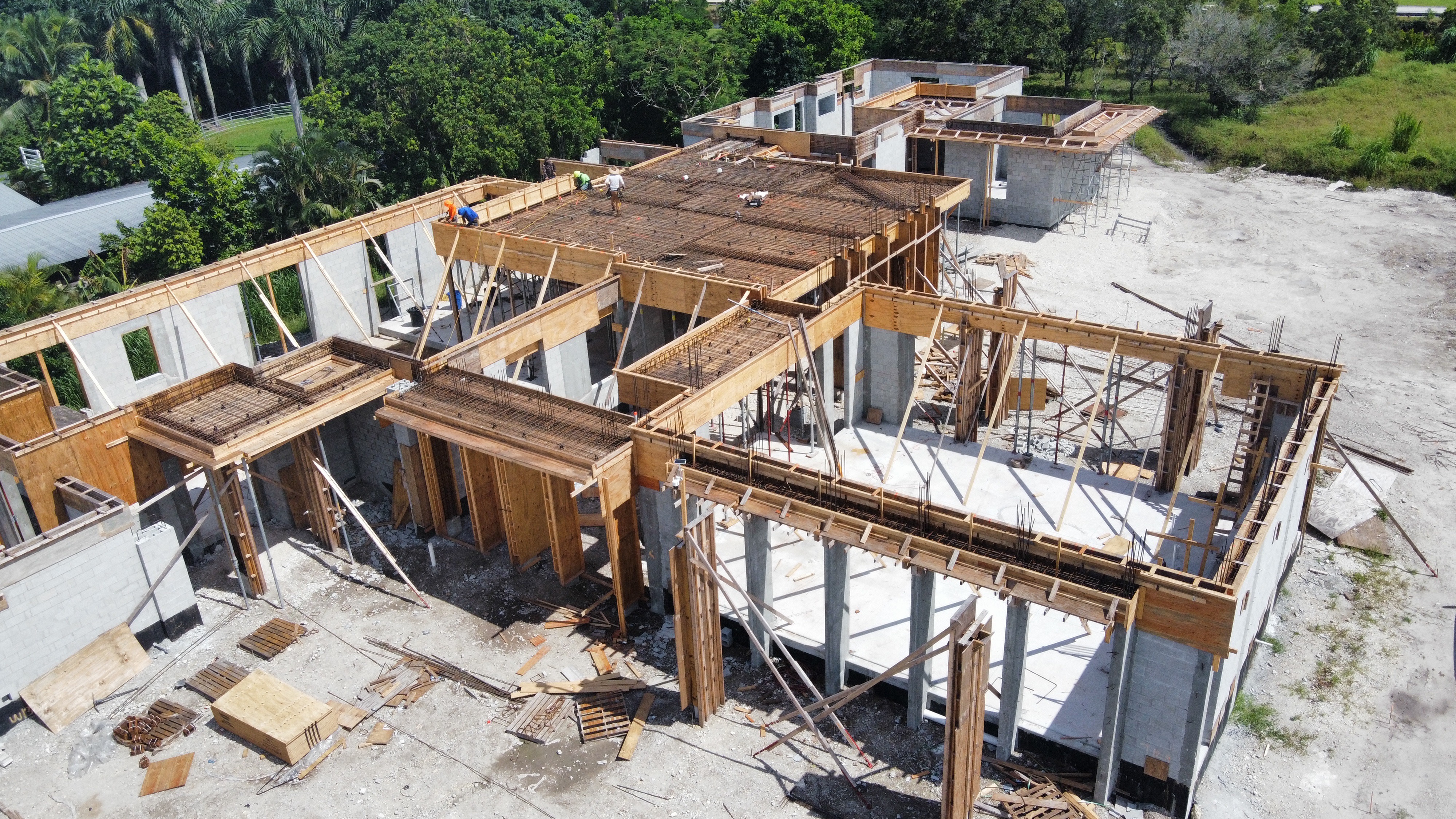 12,000+ sqft residential shell construction, covering excavation, structural elements, and roof system through sheathing.